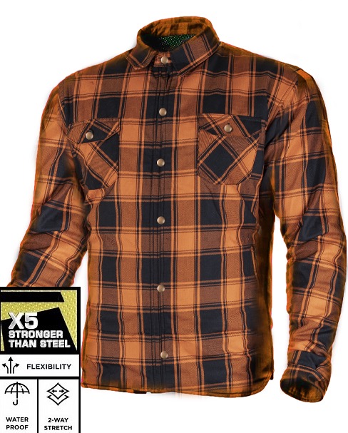 Flanell motorsykkelskjorte kombinert med høy sikkerhet med CE Level-2 beskyttelse for skuldre og albuer og ryggplate inkludert.