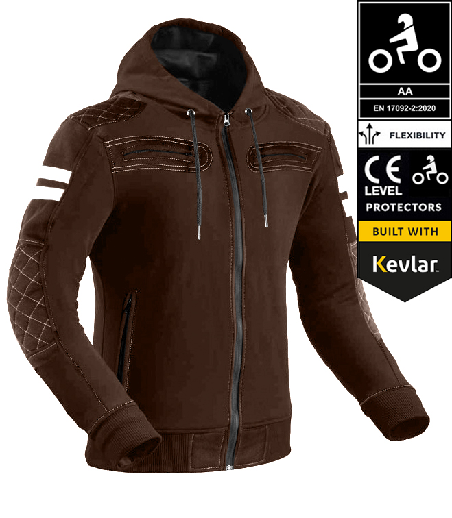 Retro skjorte med full dekning Dupont Kevlar. En etterlengtet hettegenser som fungerer både som jakke og som vanlig genser.