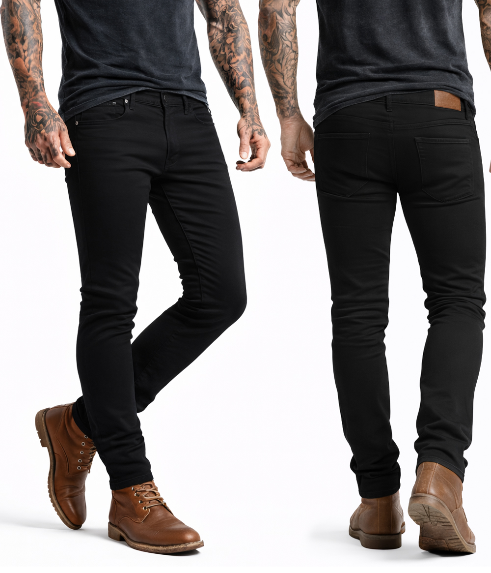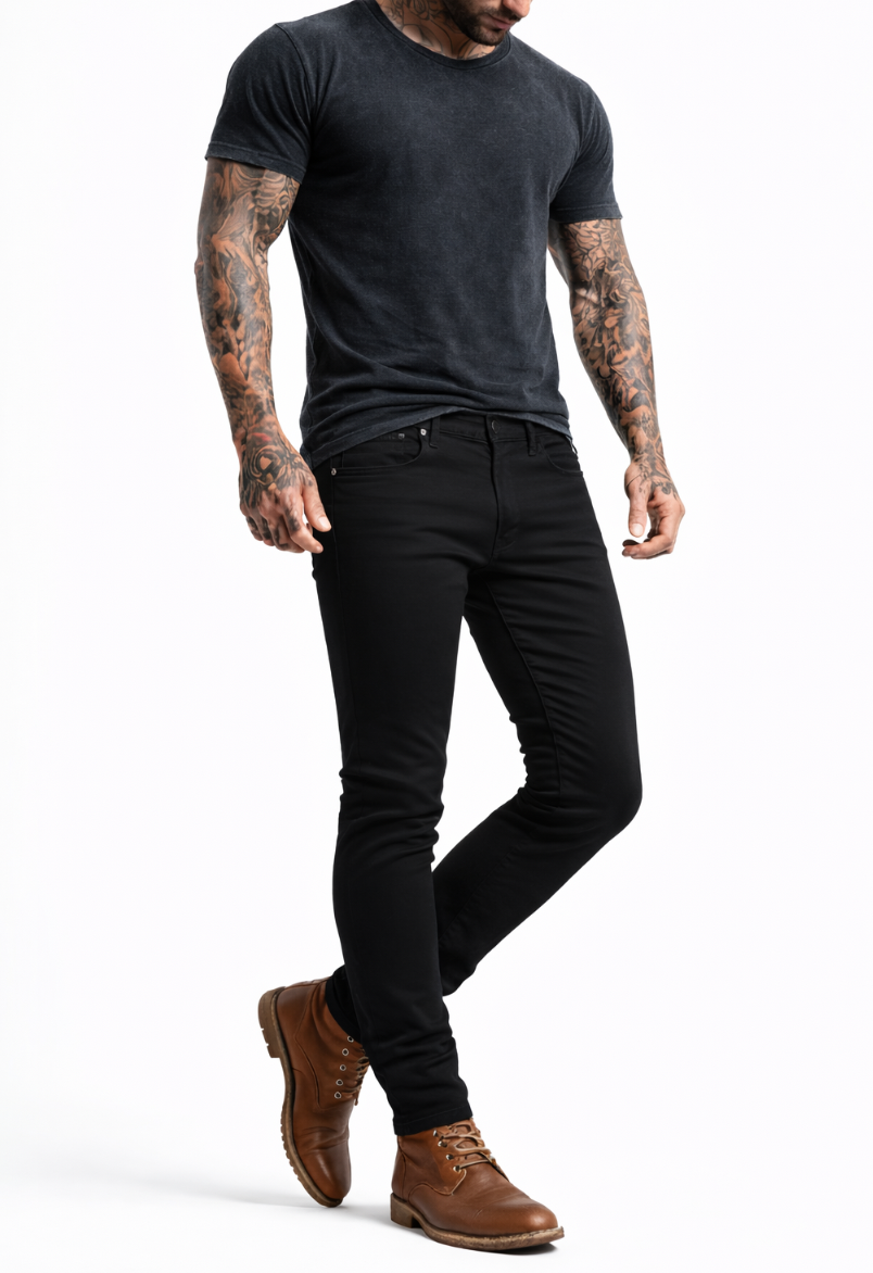 - Design: Stonewash med distressed edging og svarte Kevlar-detaljer.