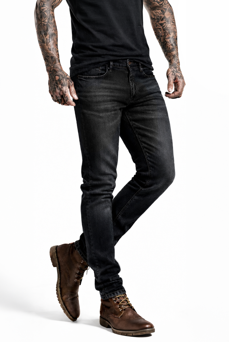 - Design: Stonewash med distressed edging og svarte Kevlar-detaljer.