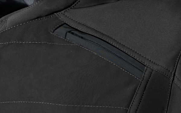 Jakken er sikret med glidelåser i YKK-kvalitet og har en innerlomme spesialdesignet for mobiltelefoner. I tillegg er jakken utstyrt med avtagbare skulder- og albuebeskyttere som oppfyller nivå 2 homologerte CE (EN1621-1: 2012) standarder.