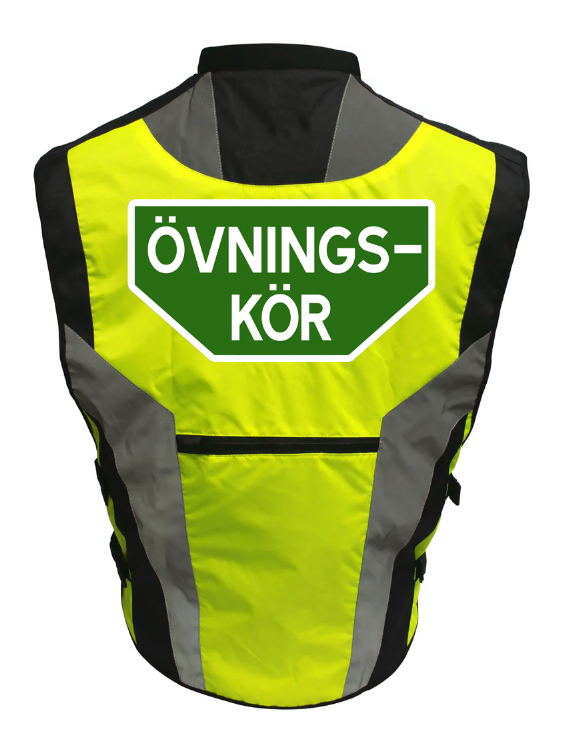 Västen uppfyller samtliga krav enligt TSFS 2010:81, vilket innebär att den är godkänd att användas som ersättning för den traditionella skylten vid övningskörning på motorcykel. Enligt föreskrifterna får skylten ersättas med en väst som bär texten "ÖVNINGSKÖR" i specifik storlek och placering – något denna väst uppfyller fullt ut.