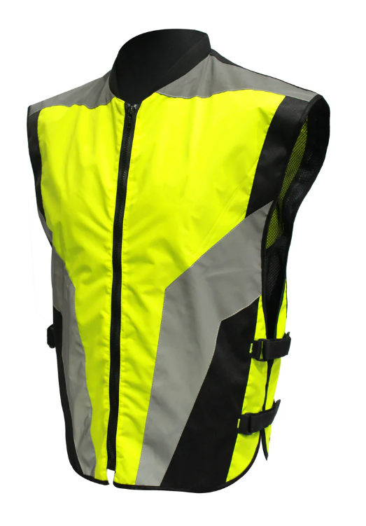Tillverkad i lätt nylonmaterial och utrustad med stora reflekterande paneler både fram och bak, ser den till att du syns tydligt i trafiken – även i mörker eller dåligt väder. Den bekväma meshfodringen ger extra komfort under längre turer, medan en praktisk bakficka och kardborrejusteringar på sidorna ger både funktionalitet och optimal passform.