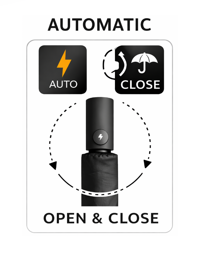 Paraplyen er utstyrt med en automatisk åpne- og lukkefunksjon, noe som gjør at du raskt kan åpne eller lukke den med et knappetrykk – perfekt når du bruker hansker eller når været plutselig endrer seg.
