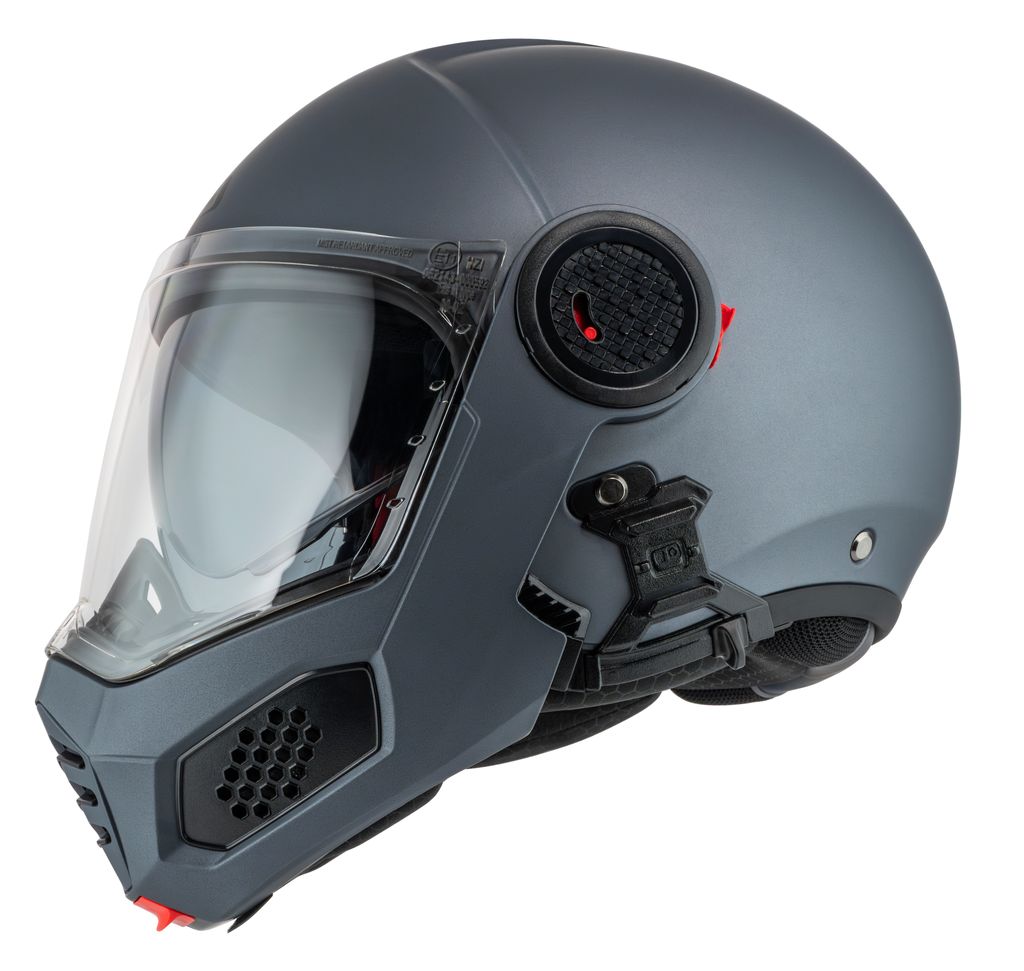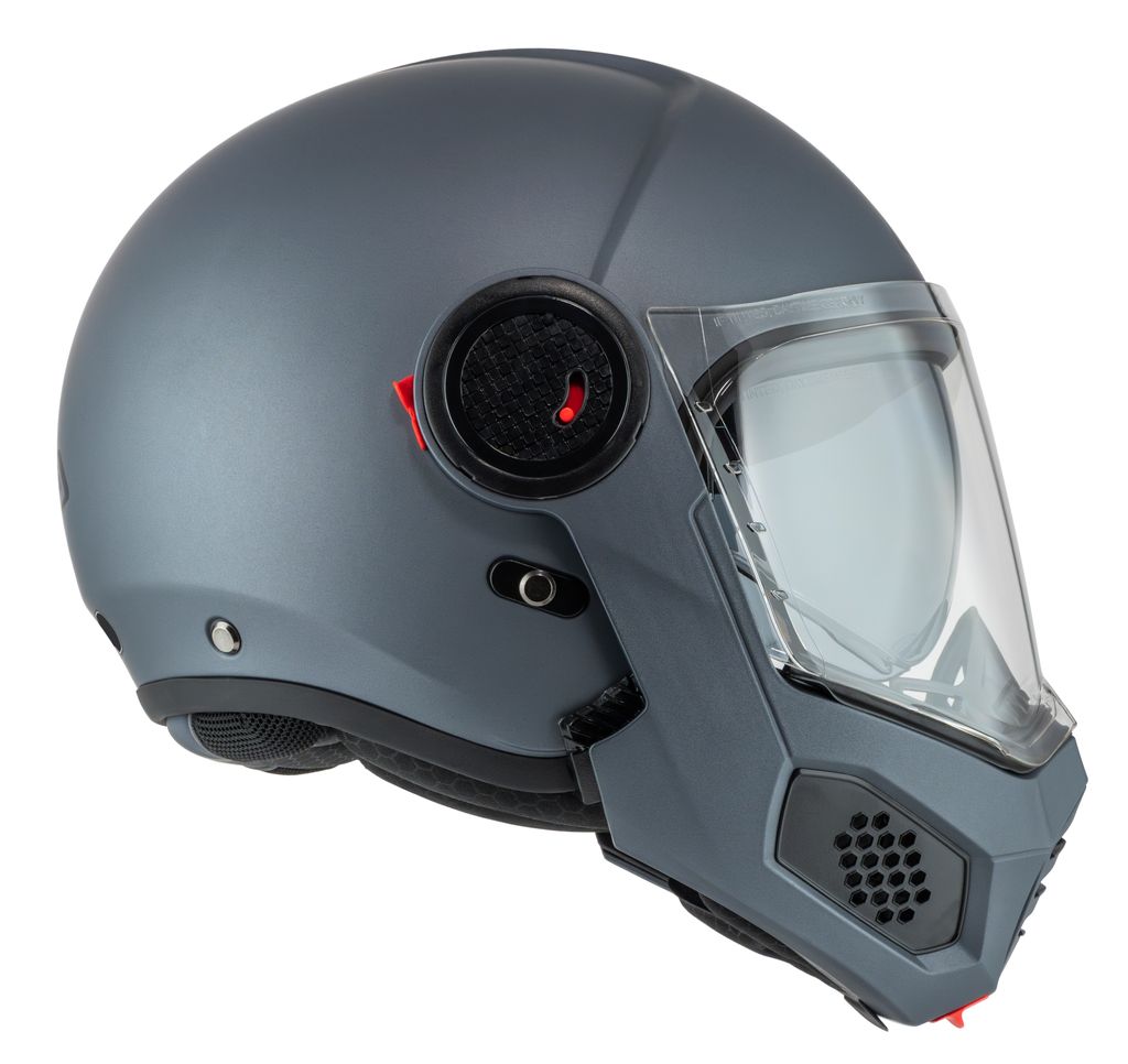 Den smarte oppfellbare konstruksjonen gjør at du enkelt kan veksle mellom integralhjelm og åpen hjelm.