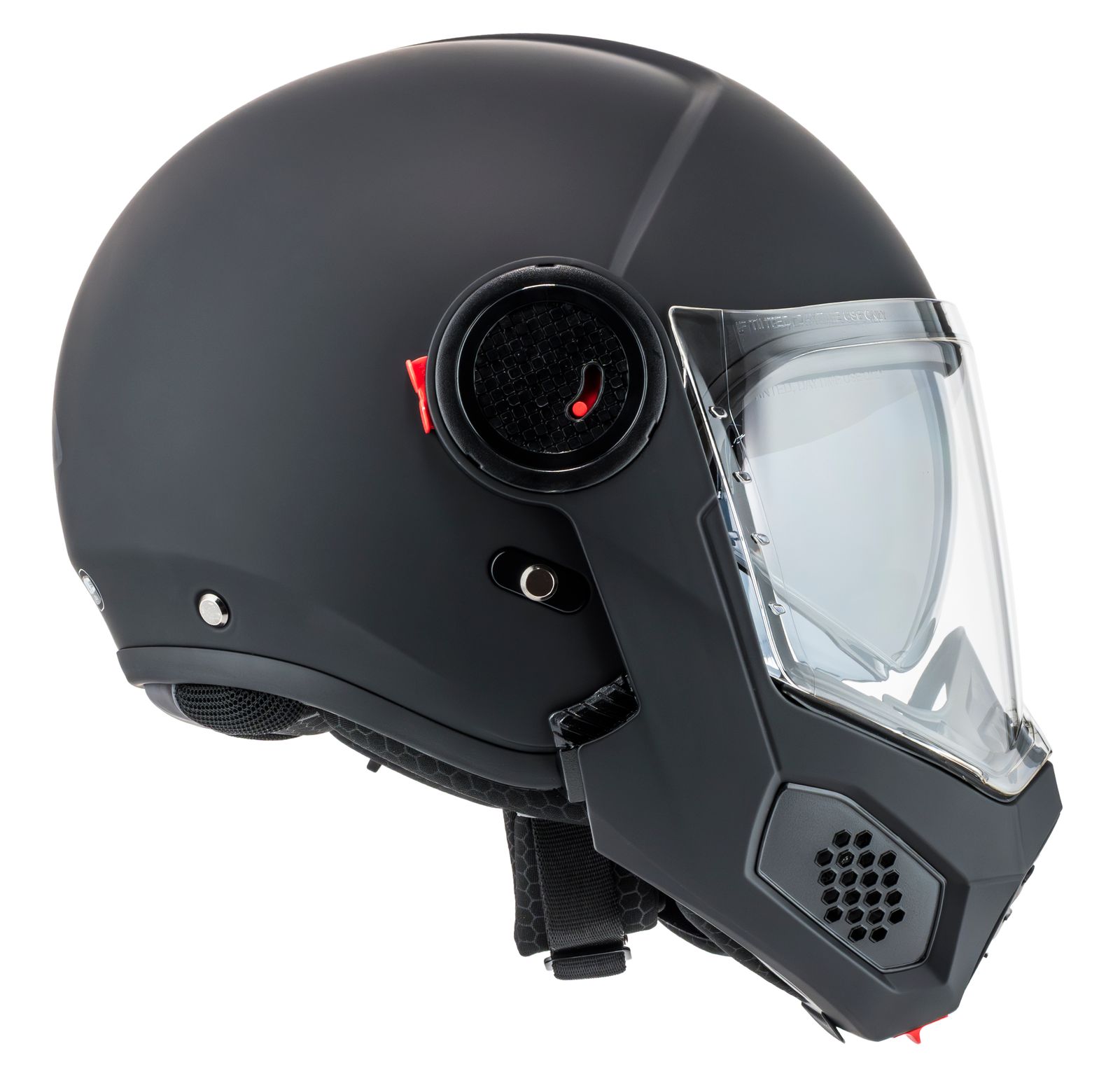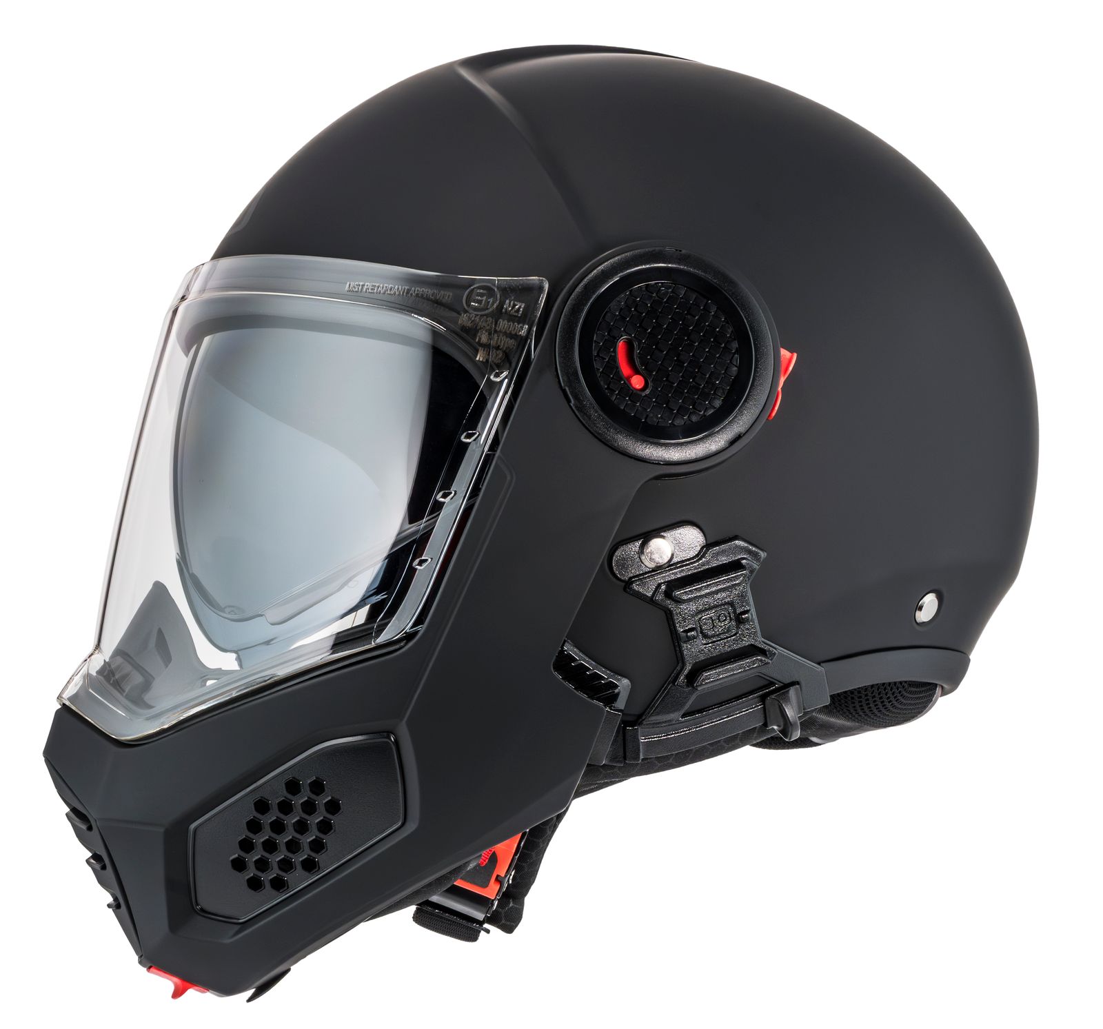 Takket være dobbel P/J-sertifisering i henhold til ECE 22.06 kan du kjøre trygt både med hakepartiet lukket på motorveien eller oppfelt i bytrafikk.