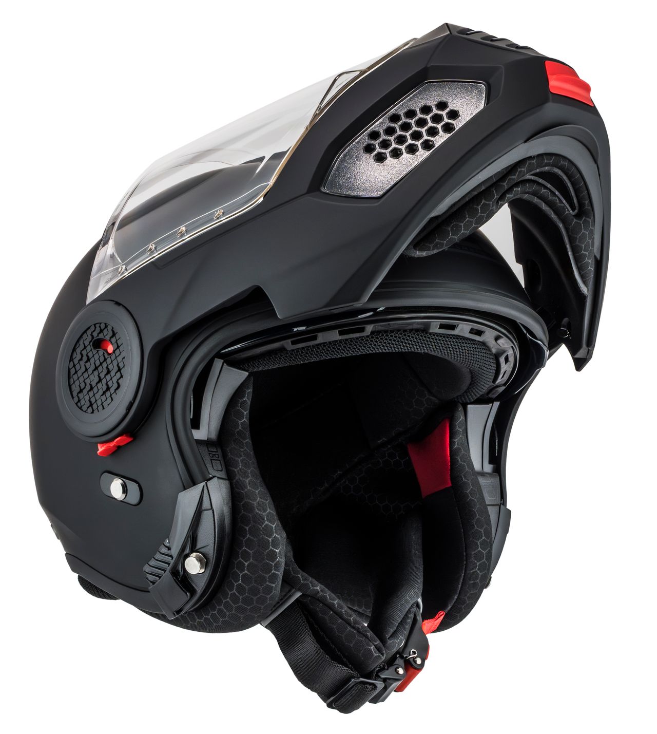 Den smarte oppfellbare konstruksjonen gjør at du enkelt kan veksle mellom integralhjelm og åpen hjelm.