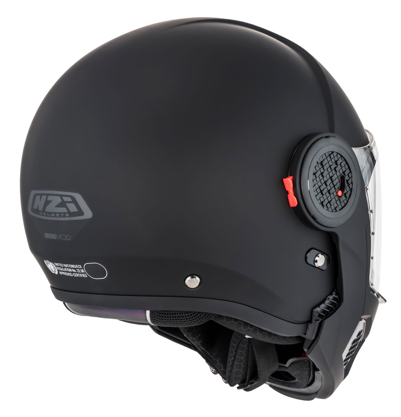 Med et enkelt trykk på en knapp felles hakepartiet opp, noe som gir bedre ventilasjon og smidighet ved stopp eller rolig bykjøring.
