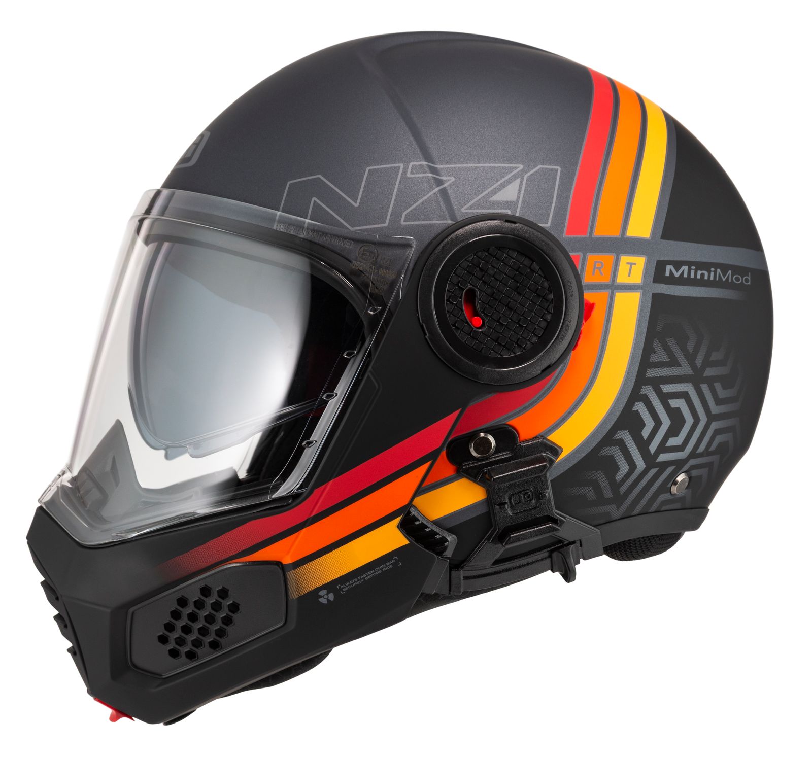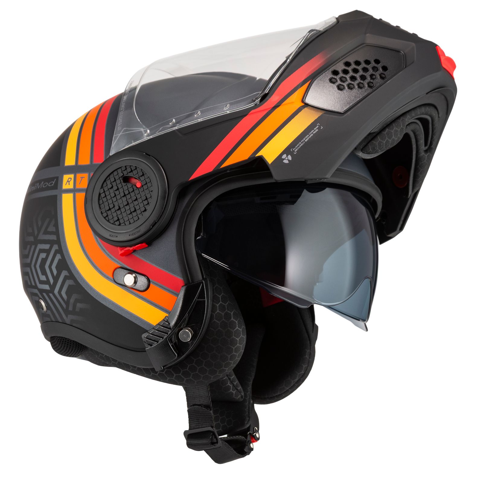 Takket være dobbel P/J-sertifisering i henhold til ECE 22.06 kan du kjøre trygt både med hakepartiet lukket på motorveien eller oppfelt i bytrafikk.