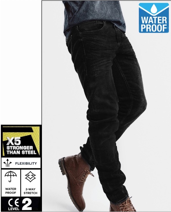Trenger ikke lenger være redd for regnet, men dra nytte av sommerens hotteste bukser, nå også vanntette. Den vannavstøtende denimen med beskyttende membran tilbyr en perfekt blanding av innovasjon, design og ytelse.