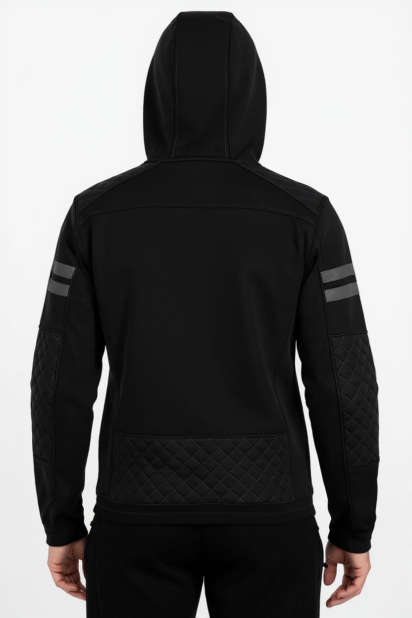 Nederst på ryggen er det et quiltet panel med dekorative sømmer som gir jakken et klassisk og sofistikert utseende. Mønsteret forsterker den urbane og avslappede stilen samtidig som det gir plagget ekstra struktur. En førsteklasses detalj som gjør at hettegenseren ser eksklusiv ut både på sykkelen og i hverdagen.