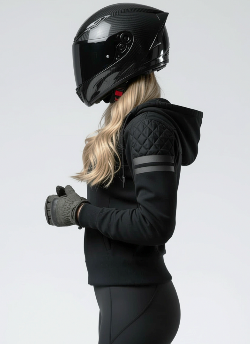 I motsetning til tradisjonelle MC-plagg er denne hoodien designet for å føles komfortabel også utenfor motorsykkelen. Materialet er fleksibelt og bevegelig, noe som gir full bevegelsesfrihet under kjøring. Slimfit-passformen gjør at den sitter tett mot kroppen og ikke flagrer i vinden.