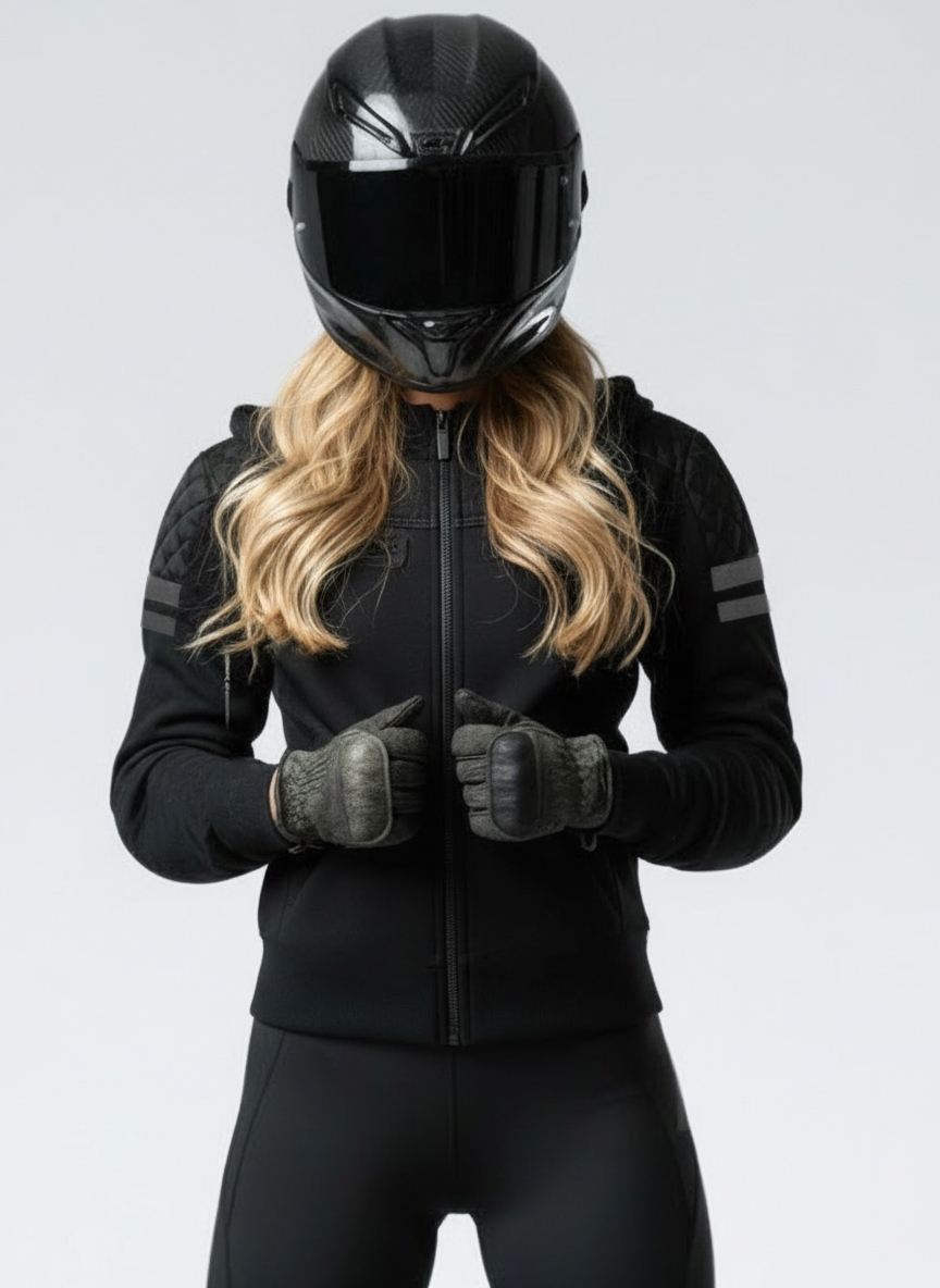 Dark Titan Kevlar Hoodie er utviklet for motorsyklister som ønsker å kombinere et stilrent hverdagsuttrykk med avansert beskyttelse. Med sin slimfit-design, vatterte paneler og Kevlar®-forsterkninger på de mest utsatte områdene får du både trygghet og komfort – like nyttig på motorsykkelen som i hverdagen.